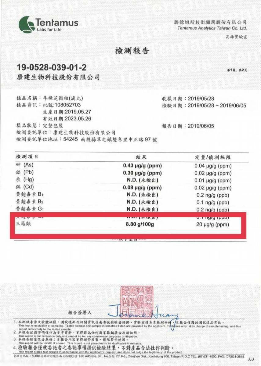 康建生技 賴敏男博士(牛樟芝之父)及 其研發團隊共同合作,是臺灣第一家以牛樟芝機能性生產線通過 TQF(GMP)、IOS22000及HACCP認證的廠商。 採擷珍貴的牛樟芝原始菌種,歷經嚴格試驗分析和精心研發後,成功以 固態有機培養工法培育出更勝於野生牛樟芝特質及成分,再經先進多次萃取和真空濃縮等技術嚴格控管程序,製造出符合人體所需求。